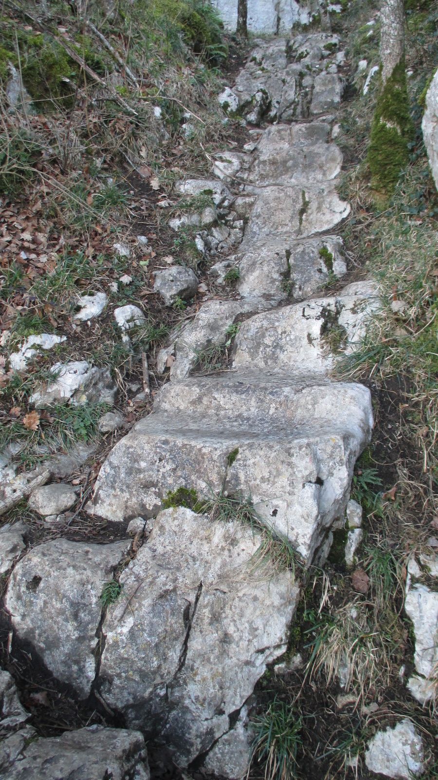 Je tourne pas mal dans la forêt et j'explore les chemins. Je rejoints la Voie Sarde par une série d'escaliers, avec de petits points de vue sur cette voie.